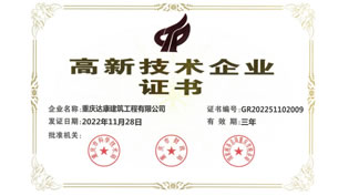 喜訊,重慶達康建筑工程有限公司順利通過重慶市科學(xué)技術(shù)局、重慶市財政局、國家稅務(wù)總局重慶市稅務(wù)局等部門的聯(lián)合評審驗收,被正式認(rèn)定為“高新技術(shù)企業(yè)”,榮獲《高新技術(shù)企業(yè)證書》。